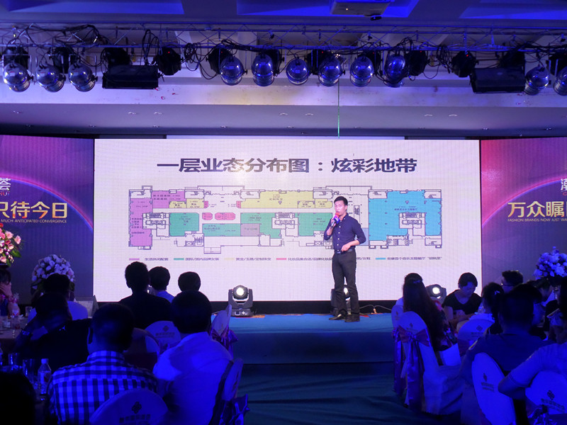 潮都薈項目招商經理郝三陽將項目后期運營、品牌入駐情況、當天簽約優惠政策等做了詳細介紹,并再一次向在座的各位商戶承諾10月1日盛大開業。一森正隆全程商業運營機構總經理楊森然先生就潮都薈“5大區位優勢”作了詳細介紹: