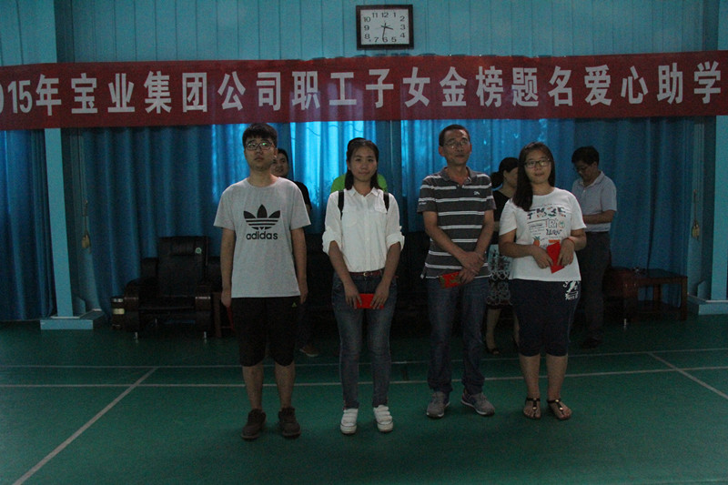 2015年8月27日下午,寶業(yè)(集團(tuán))公司組織開展了2015年“愛心助學(xué)”活動,集團(tuán)公司副總經(jīng)理譚照明先生、代均康先生、財務(wù)總監(jiān)黃曉琴女士和房地產(chǎn)總經(jīng)理汪軍先生出席了本次活動。根據(jù)公司“愛心助學(xué)”獎勵制度對15名考入本科院校的職工子女進(jìn)行了獎勵,并將助學(xué)獎金發(fā)到了這15名的職工子女手中。