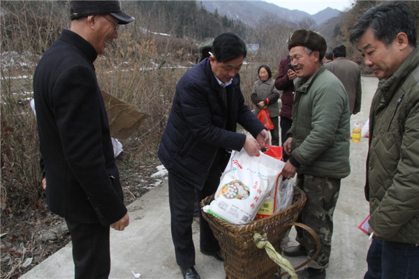 2018年2月7日,安康寶業(yè)公司扶貧工作組響應(yīng)市工商聯(lián)“萬(wàn)企幫萬(wàn)村”的號(hào)召,與漢濱區(qū)中原鎮(zhèn)麻廟村結(jié)為幫扶對(duì)象,在春節(jié)來(lái)臨之際他們冒著嚴(yán)寒和冰雪路滑,給該村47戶貧困戶送去了米面糧油和大肉。