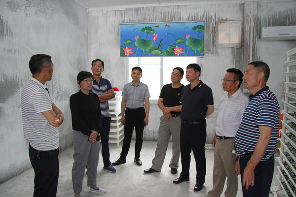隨后一行人又前往寶業公司扶貧基地麻廟村進行察看,首先察看了500畝桑園,桑園長勢一片大好,為春蠶的飼養提供有力保障。然后來到合作社養蠶工廠查看春蠶飼養情況,第一批已吐絲結繭即將下架,同時查看了寶業公司為合作社扶持的現代化蠶具設備,對寶業公司為麻廟村的高要求,高起點的產業扶持給予肯定。