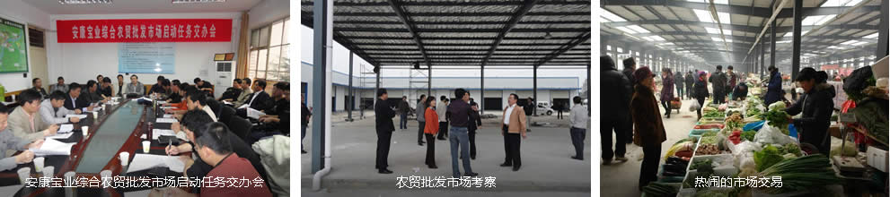 寶業綜合農貿市場地處安康三橋南頭,是寶業集團公司為大力支持安康創建國家級衛生城市和園林城市,著力解決長期以來馬路市場、街邊市場等問題而興建的陜南最大規模的農副產品交易中心。本市場從2010年10月開始邊建設、邊運營,截止目前,累計投資1.4億元,已建成面積達3萬多平方米,集蔬菜、水產、干貨、糧油、水果以及配套服務的商務賓館于一體的大型綜合農貿批發市場。市場現入駐商戶100多戶,年交易量達35萬噸,交易額30億元人民幣。